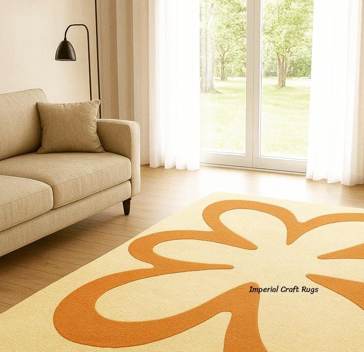 Hand Tufted Wool Rug | Yellow Abstract Flower Carpet, Custom Size