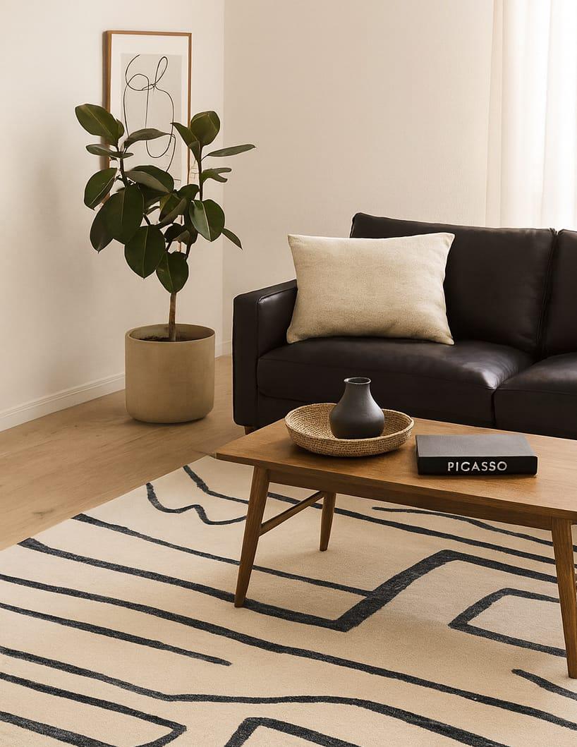 ​Elevate your living space with this stunning hand-tufted rug, featuring a playful yet sophisticated abstract line art design. Made from 100% premium wool, this rug is not only a visual treat but also incredibly soft and durable underfoot.