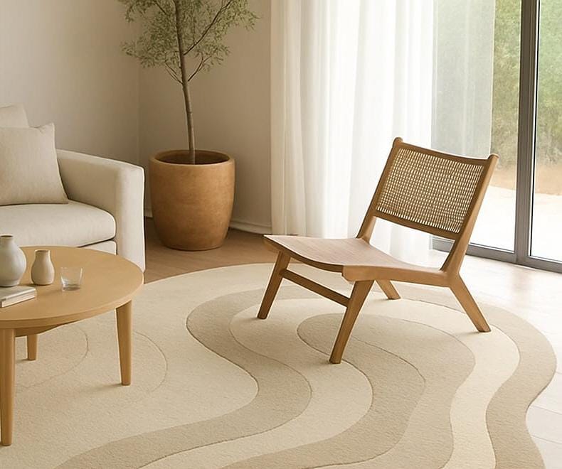 Transform your living space with this Modern Wavy Beige Hand-Tufted Wool Rug, designed with soothing organic curves and a beautiful high-low pile texture. The soft neutral tones blend perfectly with minimalist, Scandinavian, boho, or contemporary interiors, making it an elegant centerpiece for any living room, bedroom, or lounge.