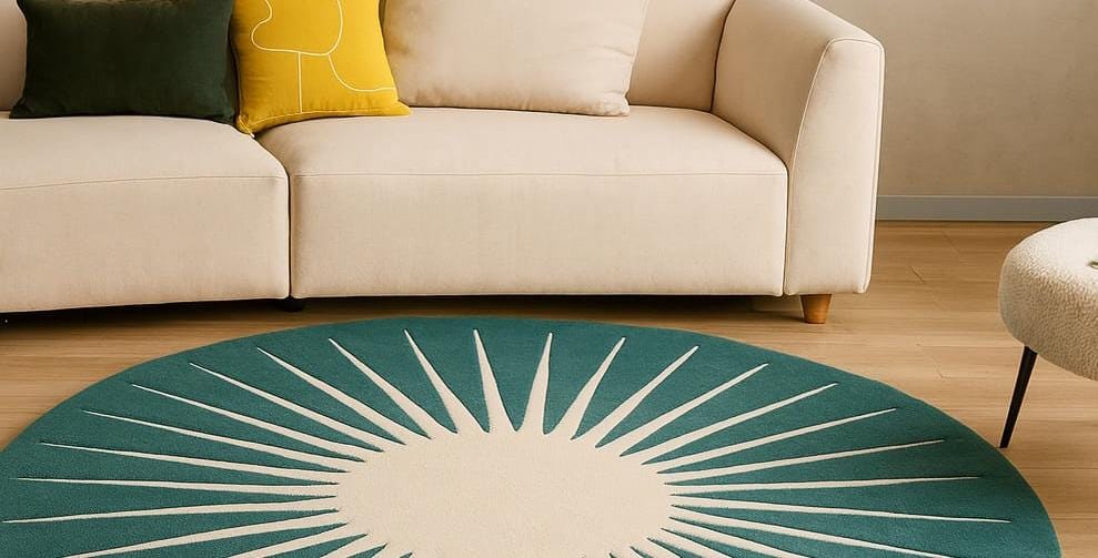 Hand Tufted Wool Round Rug – Modern Sunburst Style