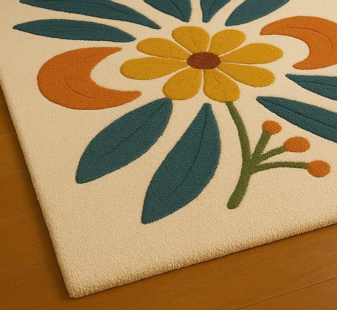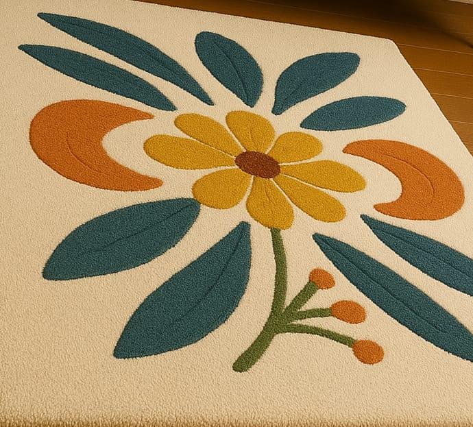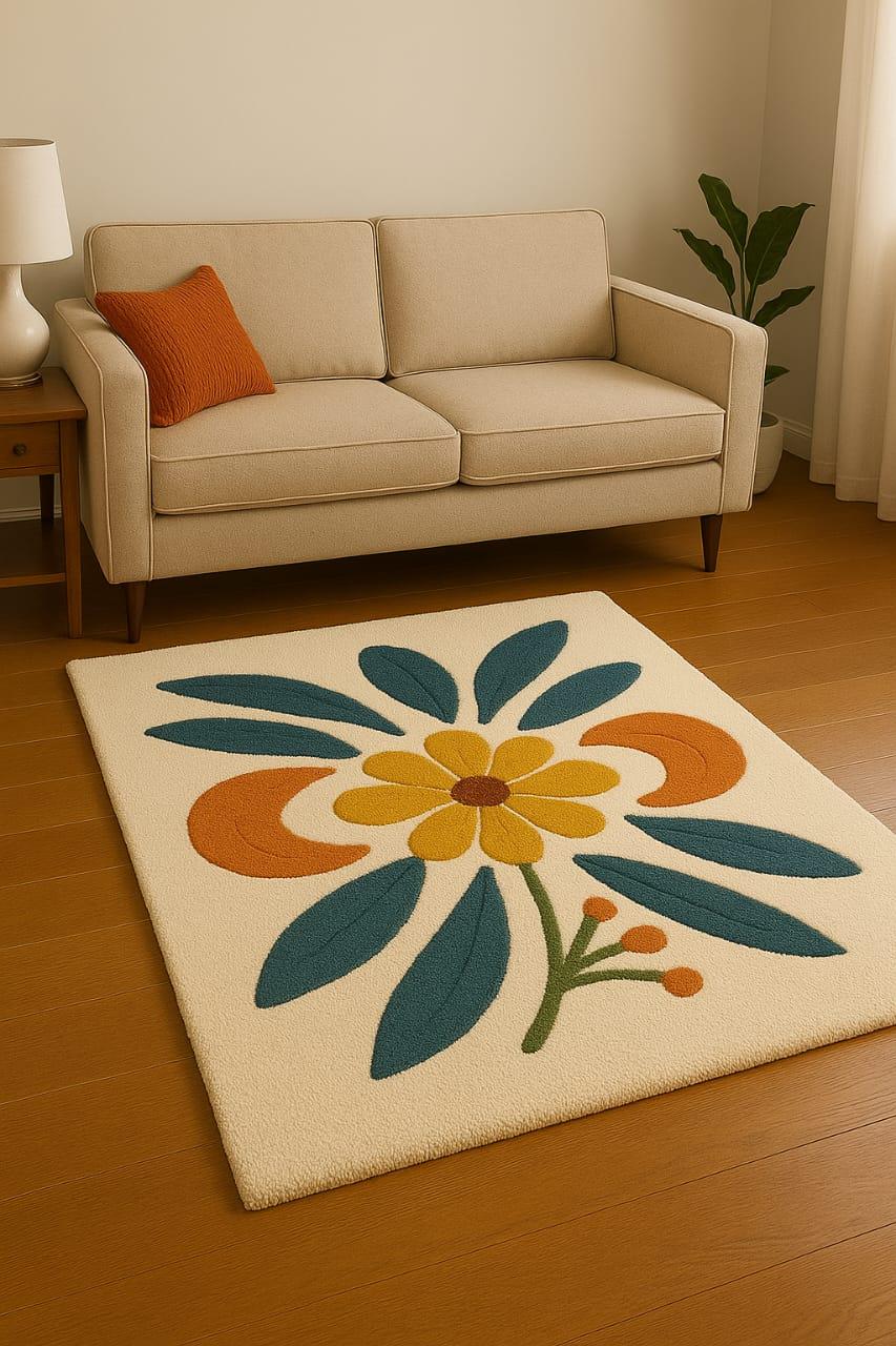 Bring warmth, color, and personality to your home with this beautifully hand-tufted 100% wool rug, featuring a bold retro-style floral design. Crafted with premium wool and exceptional artisan skill, this rug adds a stylish and cozy touch to any living room, bedroom, or reading nook.