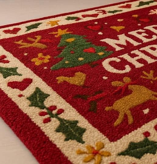 Bring the warmth of Christmas to your home with this beautifully hand-tufted 100% wool holiday rug, crafted to add festive charm and cozy comfort to any space. Designed with vibrant Christmas motifs, rich red tones, and premium wool texture, this rug is perfect for living rooms, entryways, and holiday décor setups.