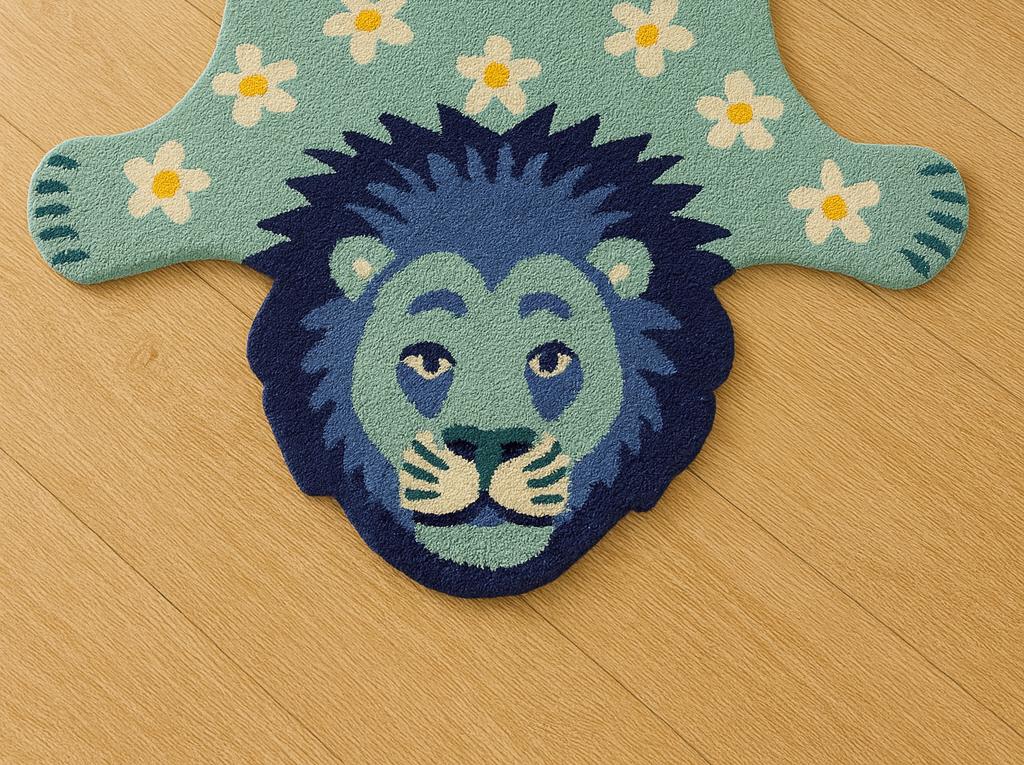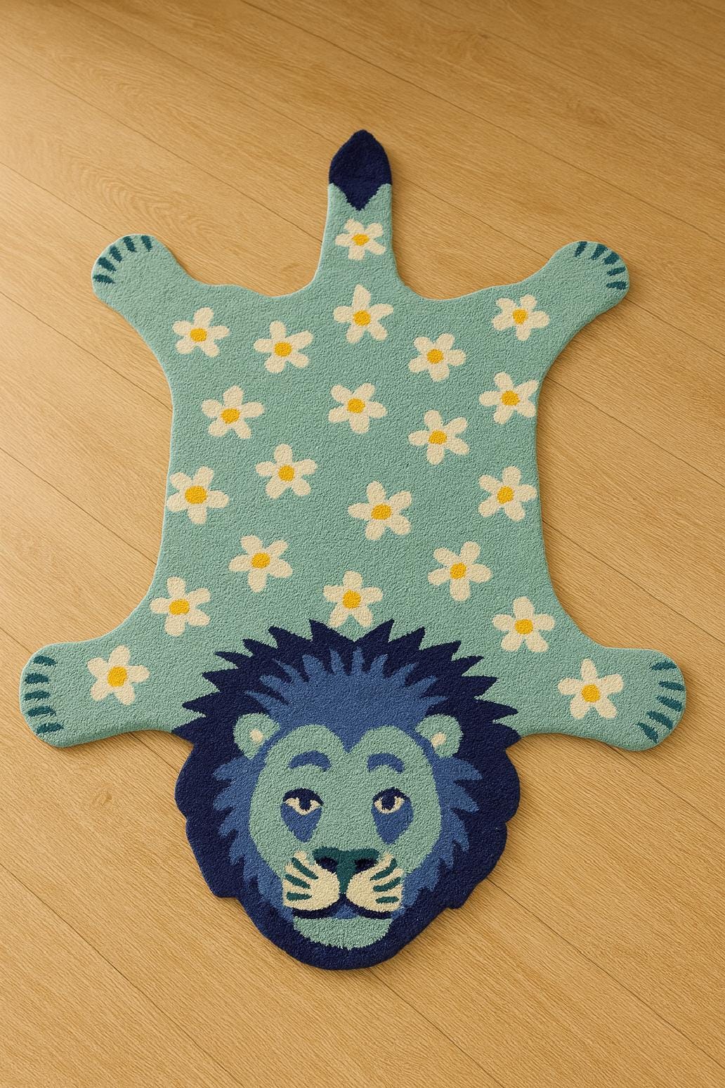 Bring charm and comfort to your space with this Hand-Tufted Wool Lion Rug, designed especially for kids’ rooms, nurseries, and playful home decor lovers. This adorable rug features a lion-shaped body, soft 100% wool texture, and a beautiful flower pattern on a pastel green base—making it a perfect statement piece for modern homes.
