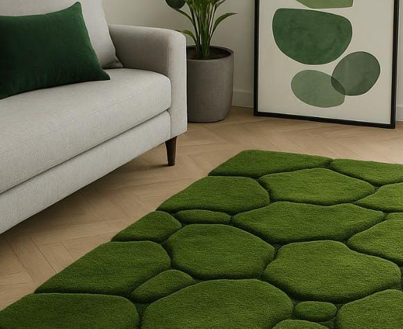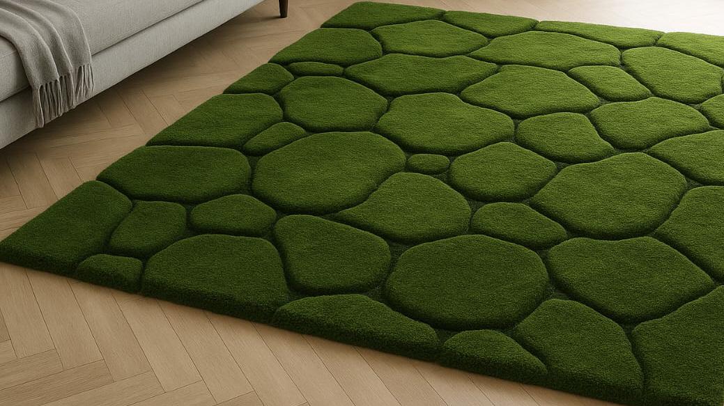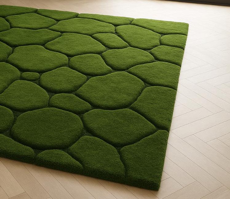 The artist who designed this rug often walked through an old forest trail where the ground was covered in round, cushiony stones layered with moss. Every step felt like walking on nature’s softness. He wanted to bring that same peaceful, grounded feeling into modern homes. That inspiration is captured in this rug—calm, natural, and beautifully organic.