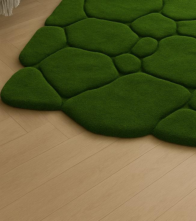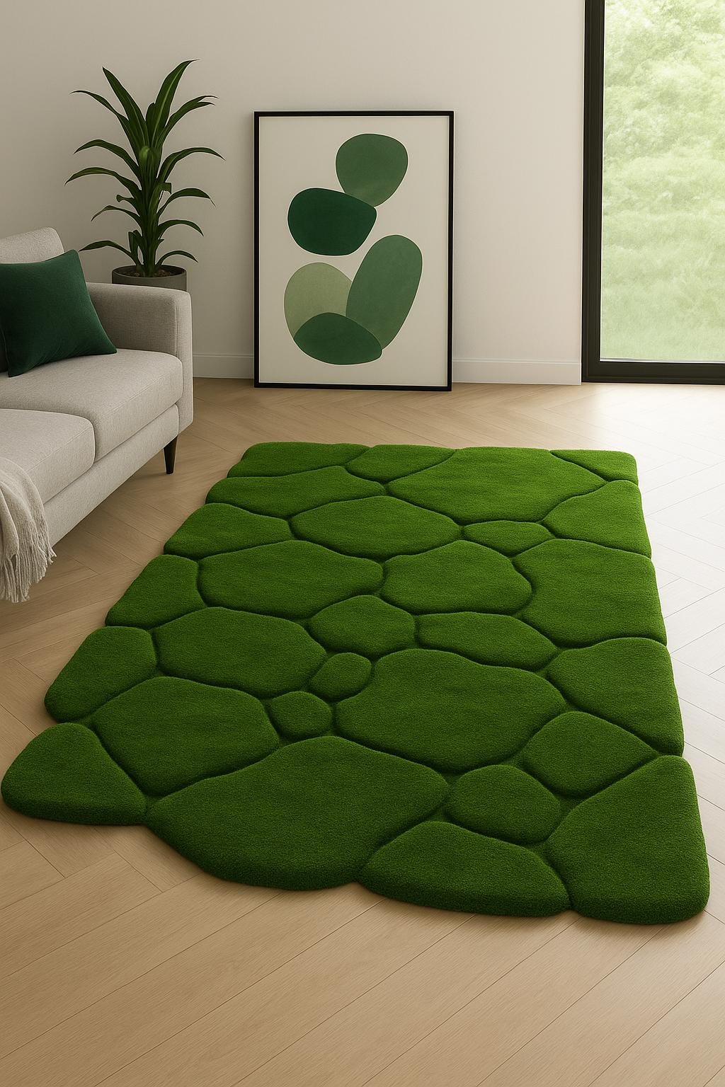 Bring nature indoors with this stunning hand-tufted wool rug, inspired by soft moss and smooth stone shapes. Designed with organic pebble-like forms and a rich green tone, this rug adds calm, texture, and modern luxury to your space.