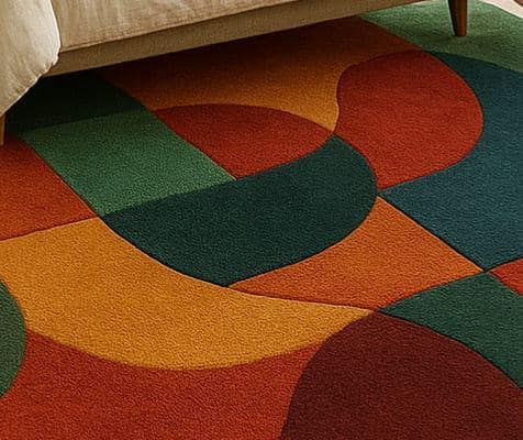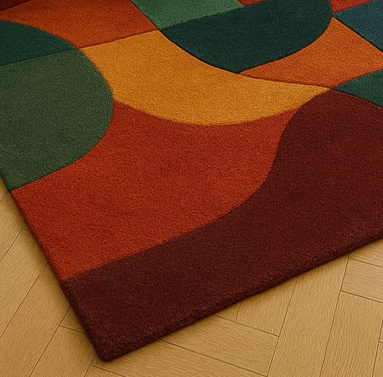 • 100% Hand Tufted Premium Wool • Abstract Geometric & Colorful Design • High–Low Pile for Texture & Dimension • Soft, Warm & Durable • Handmade & One of a Kind • Custom Sizes Available