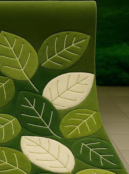 Crafted using 100% premium wool, this rug features a high–low pile construction that adds depth, texture, and a luxurious underfoot feel. The layered pile heights highlight the leaf veins and pebble shapes beautifully, making it a perfect statement piece for living rooms, bedrooms, reading corners, or nature-inspired interiors.