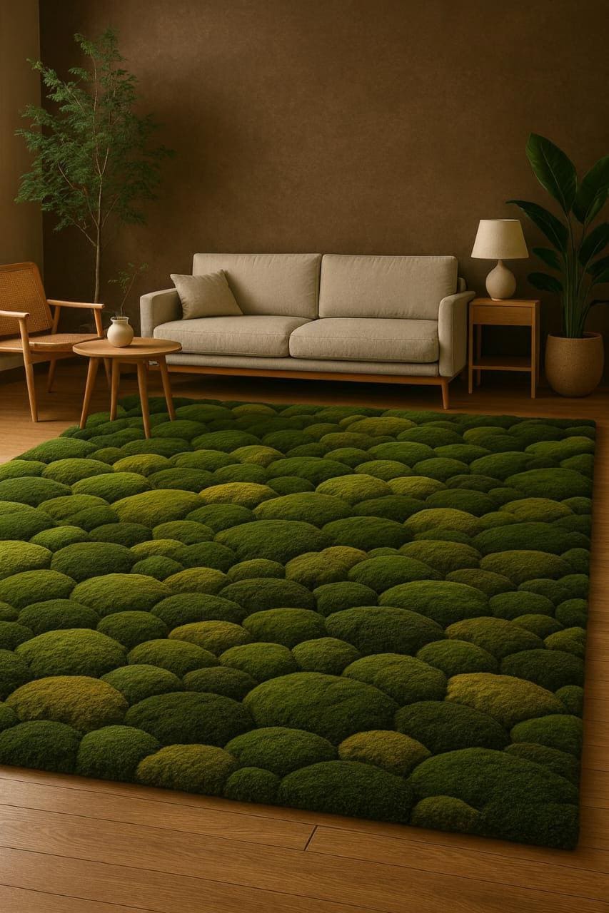 Bring nature indoors with this stunning green moss-inspired hand tufted rug. Designed with a soft pebble texture and organic pattern, this rug adds warmth, depth, and a calming vibe to any living space.