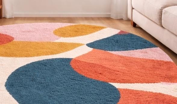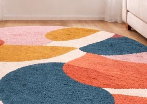 Designed with a modern abstract geometric pattern, this rug blends neutral and earthy tones like beige, green, mustard, terracotta, and soft pink—perfect for contemporary, boho, or minimalist interiors.