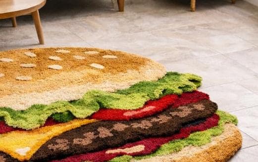 Add a fun and playful touch to your home with this hand tufted burger-shaped wool rug. Carefully crafted using premium quality wool, this unique food-inspired rug is soft, durable, and perfect for modern interiors. This eye-catching hamburger rug works beautifully as a statement piece in living rooms, bedrooms, dorm rooms, cafés, or creative spaces. Its vibrant colors and textured layers make it a favorite among food lovers and modern decor enthusiasts. ✨ Why You’ll Love It: ✔ 100% Hand Tufted by skilled artisans ✔ Made from high-quality natural wool ✔ Soft, thick pile for comfort underfoot ✔ Unique burger / hamburger food design ✔ Perfect for modern, funky & aesthetic interiors ✔ Great gift idea for housewarming or food lovers 📐 Customization Available: Sizes, colors, and backing can be customized on request. Just message us before ordering. 🧼 Care Instructions: Vacuum gently. Spot clean only. Avoid direct sunlight for long-lasting colors. This rug is not just a carpet — it’s a conversation starter 🍔✨