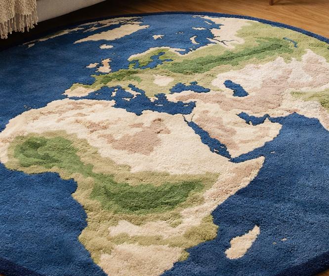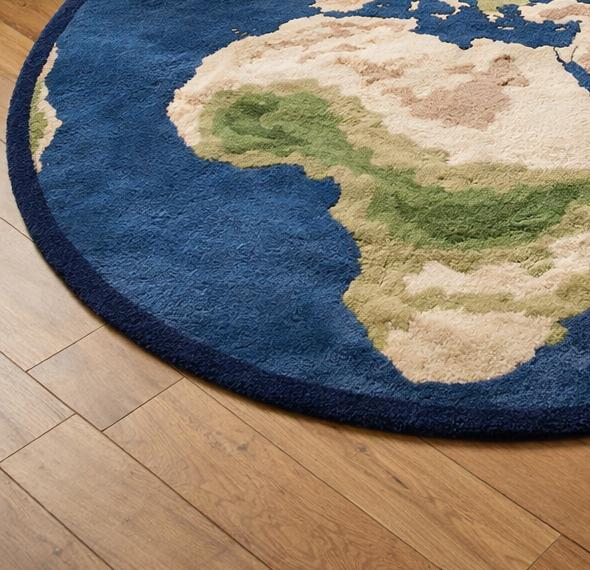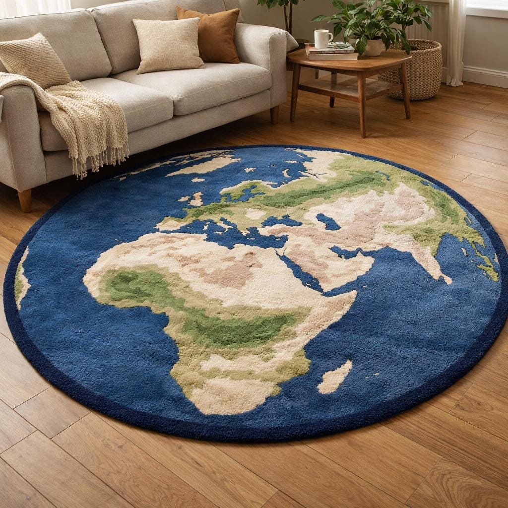 Bring the beauty of the world into your home with this hand tufted wool world map rug, designed to add warmth, creativity, and a global touch to any space. This round area rug is carefully hand tufted using premium natural wool, offering a soft, plush feel underfoot while remaining durable for everyday use. The detailed earth-inspired world map design makes it a perfect choice for living rooms, kids’ rooms, playrooms, study areas, or modern homes. ✨ Why You’ll Love This Rug: ✔ Soft & Comfortable – Perfect for sitting, playing, or relaxing ✔ Durable Wool Pile – Long-lasting and easy to maintain ✔ Unique World Map Design – Educational & decorative ✔ Handmade Craftsmanship – Each rug is unique ✔ Noise Reduction & Warmth – Ideal for hardwood or tile floors 📏 Product Details: Material: 100% Natural Wool Technique: Hand Tufted Shape: Round Pile Height: Medium pile (comfortable & practical) Color: Blue base with earth tone continents Backing: Cotton backing for stability 🏡 Perfect For: Living room décor, kids bedroom, nursery, study room, playroom, gift for housewarming, or world-map themed interiors. ✨ Custom sizes & colors available. Message us anytime for a custom rug made just for you.