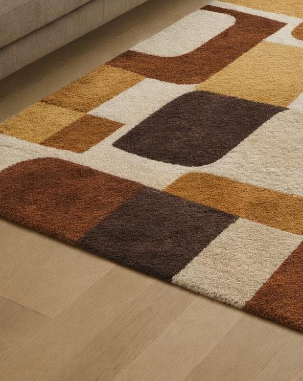 Bring warmth and modern elegance to your home with this hand tufted wool area rug, carefully crafted by skilled artisans. Featuring a modern geometric pattern in earthy tones of brown, beige, and cream, this rug is perfect for contemporary, mid-century, and minimalist interiors. Made from premium quality wool, this rug is soft underfoot, durable, and ideal for everyday use. Whether placed in your living room, bedroom, office, or lounge, it instantly enhances the look of your space. ✨ Product Details: Material: 100% Hand Tufted Wool Design: Modern Geometric Pattern Pile Height: Medium pile (comfortable & easy to maintain) Backing: Cotton backing for durability Style: Modern / Contemporary / Mid-Century Usage: Living Room, Bedroom, Office, Home Decor 🌍 Why You’ll Love It: ✔ Handcrafted by expert artisans ✔ Soft, durable & long-lasting ✔ Neutral earthy colors match any decor ✔ Custom sizes available on request 📦 Shipping: Carefully packed and shipped worldwide with tracking. 🧼 Care Instructions: Vacuum regularly. Spot clean with mild detergent. Avoid direct sunlight for long-lasting colors. 💬 Customization Available: Need a different size or color? Message us anytime — we’re happy to help!