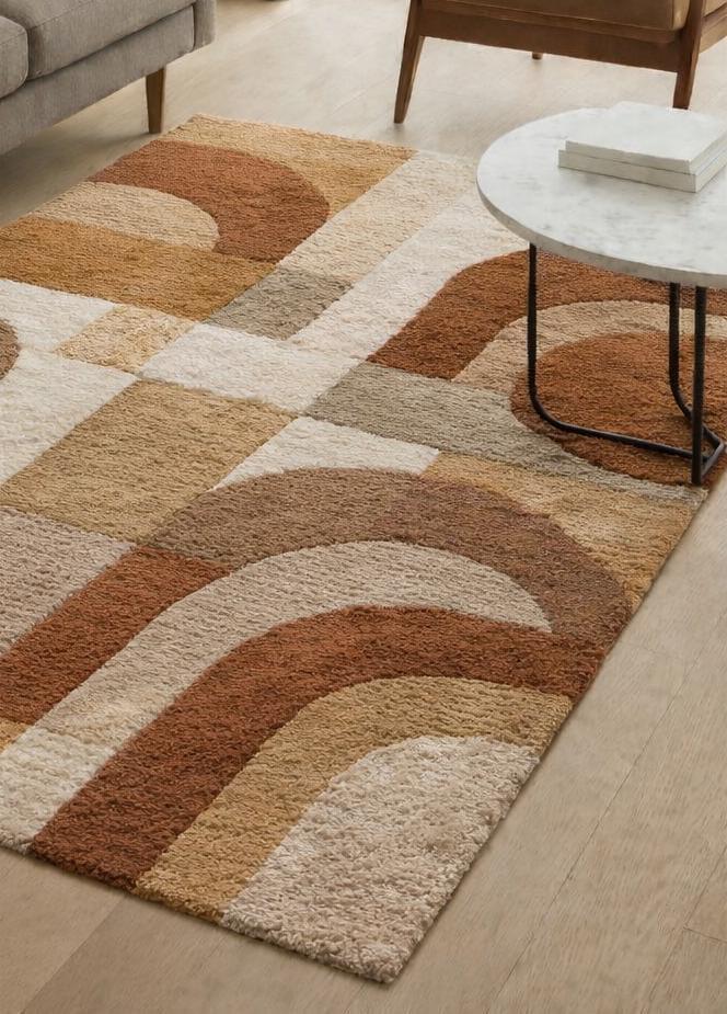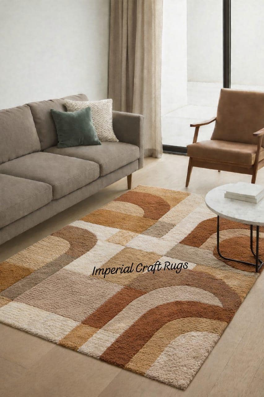 Bring warmth and modern elegance to your home with this hand tufted wool area rug, carefully crafted by skilled artisans. This rug features a modern abstract geometric design in soothing beige, brown, and neutral tones, making it a perfect choice for contemporary and minimal interiors. Made from 100% premium wool, this rug offers a soft plush feel, excellent durability, and natural insulation. Ideal for living rooms, bedrooms, dining areas, or office spaces, it blends comfort with timeless style. ✨ Product Details Technique: Hand Tufted Material: 100% Natural Wool Design: Modern Abstract / Geometric Colors: Beige, Brown, Cream, Neutral Shades Pile Height: Medium pile (soft & comfortable) Backing: Cotton backing for durability Condition: Brand New Origin: Handmade in India 🏡 Perfect For Living Room Rug Bedroom Carpet Modern Home Decor Minimalist & Boho Interiors 📦 Care Instructions Vacuum regularly (without beater bar) Spot clean with mild detergent Dry clean recommended 🎨 Customization Available: Custom sizes and color options are available. Feel free to message us for personalized orders. 📌 Note: Slight variations in color and pattern may occur due to handmade nature, making each rug unique.